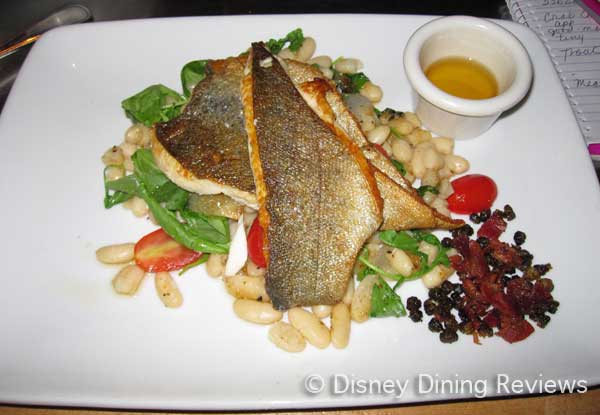 I ordered the Rainbow Seared Trout which was delicious especially on the bed white bean salad which was finished with grape tomatoes, arugula, bacon with a balsamic and brown butter sauce. This definitely enhanced this dish and all of the flavors blended nicely together. The fish was tender and done just right. I enjoyed this dish very much.