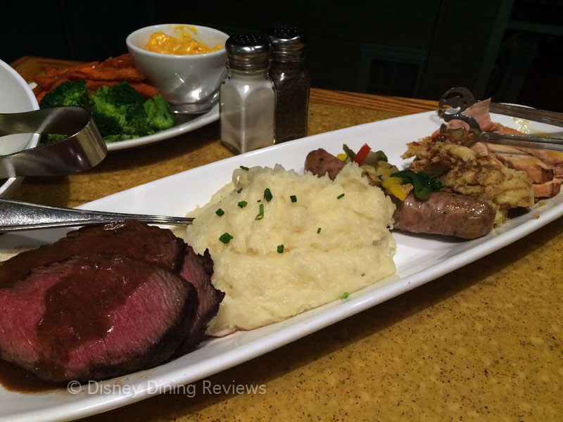 We had lunch on this particular day. The salad was good but we were somewhat disappointed this visit. We are not sausage fans and the meat was somewhat tough which pretty much left turkey and stuffing which needed tons of sauce because they too were very dry.