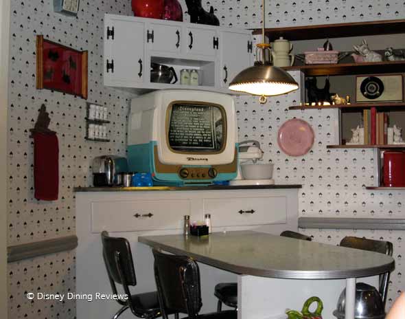 I was looking forward to sitting in one of the appropriately themed waiting areas…however, as soon as we checked in we snapped some photos and before we knew it we were already being shown to our table. Since we were just a party of 2 we were seated at a small table between to larger parties. Felt a little crammed at first, but not as bad as some other places. In the past we had gotten lucky and were seated in one of the “kitchen tables” which is my favorite place to sit. However I had clear view of the tv (in a kitchen area) across the way.